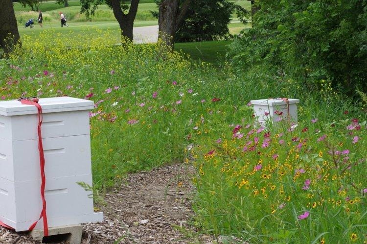This past spring, the Village Links of Glen Ellyn began keeping bees. The bee yard, which includes four colonies, is located adjacent to the greenhouse at the maintenance center. The bees are being raised to produce honey that can be used in menu items and specialty cocktails at Reserve 22 Restaurant, located at the Links.